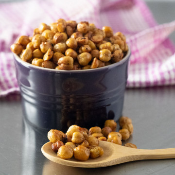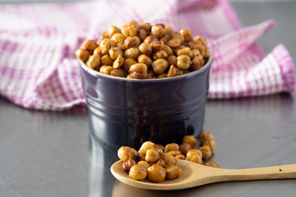 Crispy, crunchy and savoury air fried chickpeas (channa) is a tasty, budget-friendly and healthier version of the deep fried snack.