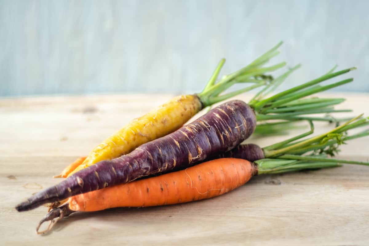 For this batch of fermented carrots I used a variety of heirloom carrots: orange, yellow and purple. The purple carrots really take over and turn the entire batch a lovely shade of purple. If you prefer you can use one colour or omit the purple altogether to preserve the original colour of the yellow and orange carrots.