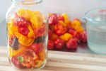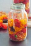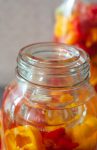 - Add peppers and garlic (if using) to the jar. Gently push them down if you need to in order to get all peppers in the jar.