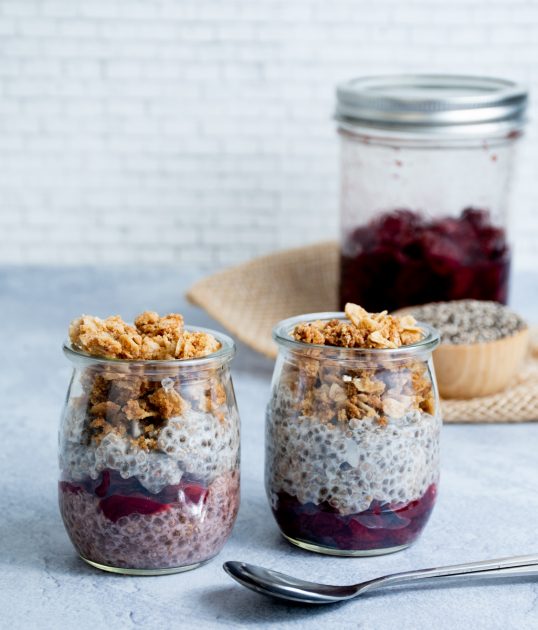 Chia pudding is simply chia seeds, liquid and flavouring, and can be quite filling. A little goes a long way! It takes just a few minutes to make and can be stored in the fridge for a couple of days.